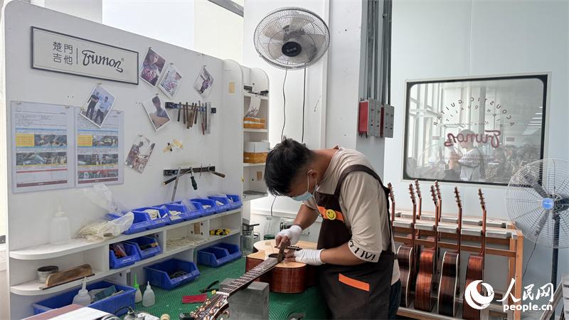 “现正在日产高端平易近谣吉他可达200多把,月产能冲破5000把,较之前提高了60%,产物及格率更是从过去的90%提拔到98%。”康卫平笑着说,智能化出产还让产物的分歧性和不变性更强,公司产物70%销往国内市场,其余则远销、新加坡等国外市场,深受消费者喜爱。