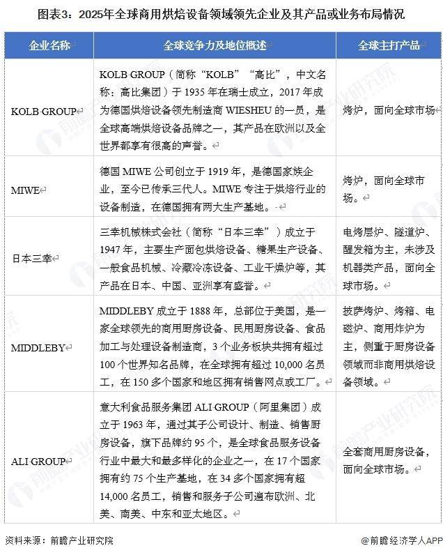 商用烘焙设备是指用于规模化出产面包、蛋糕、中式糕点等烘焙食物的机械设备及展现设备,笼盖原料处置、成型、发酵、烘烤、展现全流程。其焦点特征是从动化程度高、产能不变、尺度化品控,全球市场上,既有汗青长久、以烤炉著称的老牌企业如Kolb、Rational等,也有以并购著称的Ali Group,还有财富500强ITW的食物设备制制部分,别的也有日本企业和中国地域布景的企业参取全球合作。企业具体结构环境如下: