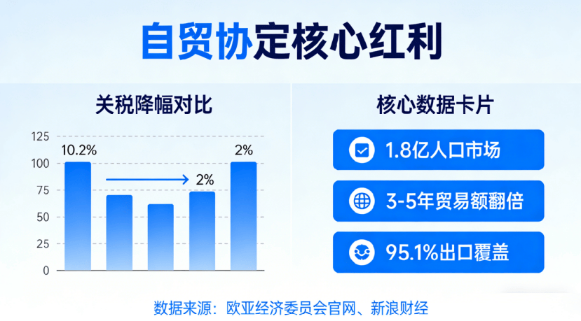 按照协定,印尼对 EAEU 国度进口商品的平均关税将从当前的 10。2% 大幅降至2%,降幅超 80%;同时,EAEU 对印尼90。5%的税目赐与关税优惠,笼盖章尼对 EAEU 出口总额的 95。1%(新浪财经 2025 年 12 月 29 日报道)。