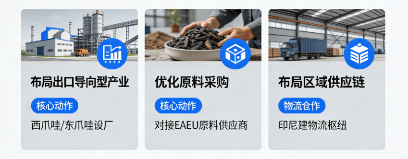 俄罗斯、哈萨克斯坦等国对家电、汽车零部件进口依赖度高,万丹的工业园设厂,为 EAEU 市场供给 “印尼制制” 的零部件。2。 优化现有产能的 “原料采购”,降低成本。