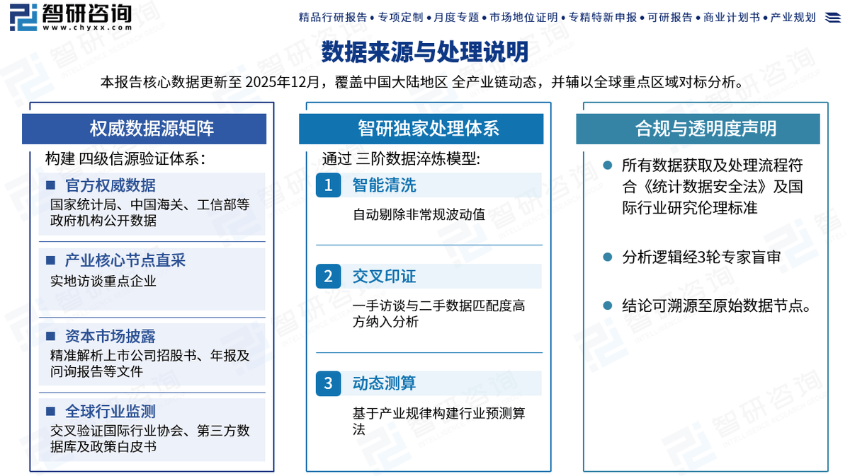 智研征询专注财产征询十五年,是中国财产征询范畴专业办事机构。公司以“用消息驱动财产成长,为企业投资决策赋能”为品牌。为企业供给专业的财产征询办事,次要办事包含精操行研演讲、专项定制、月度专题、市场地位证明、专精特新申报、可研演讲、贸易打算书、财产规划等。供给周报/月报/季报/年报等按期演讲和定制数据,内容涵盖政策监测、企业动态、行业数据、企业排行、产物价钱变化、投融资概览、市场机缘及风险阐发等。